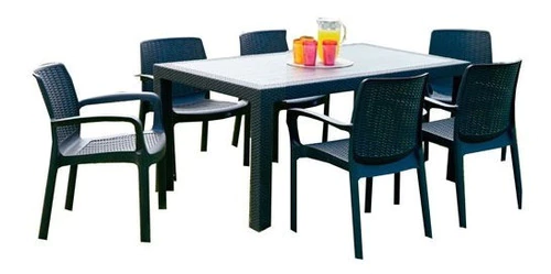 MESA SUPER SOLIDA 150X90 RATAN CON 6 SILLONES MODERNOS EN RATAN